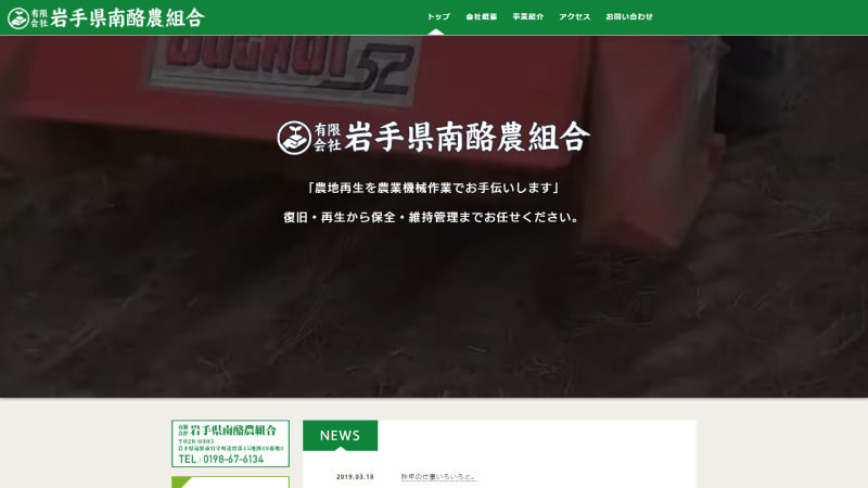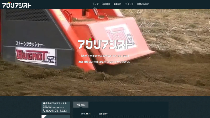 農地を再生させるお手伝いを最大限に表現するため、動画でアピール。農業機械の写真を多めに、事業内容を伝えることが目的です。