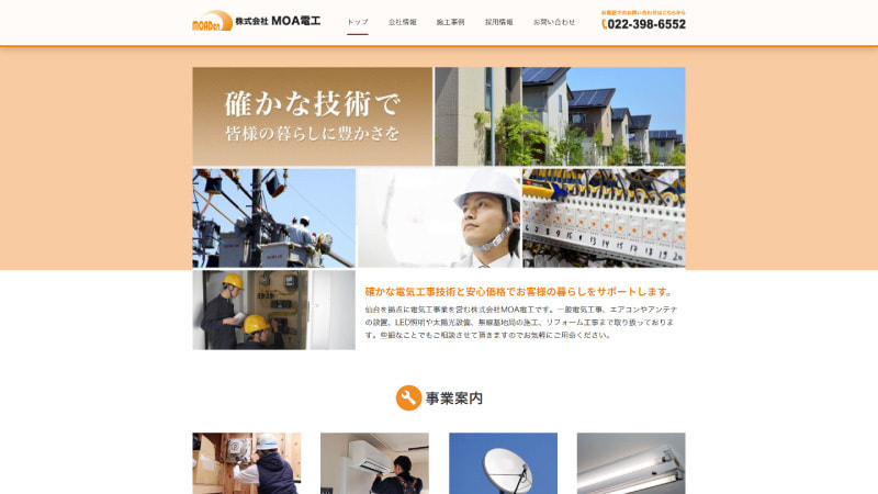 個人事業者制作のブログサイトからリニューアル。企業のサイトとして信頼感のあるサイトにし、スマホからでもお問い合わせしやすいよう設計しました。