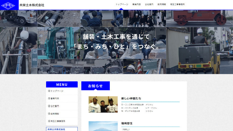 大きな公共事業等に携わるため、企業サイトとして、しっかりと実績を掲載するホームページにリニューアルしました。